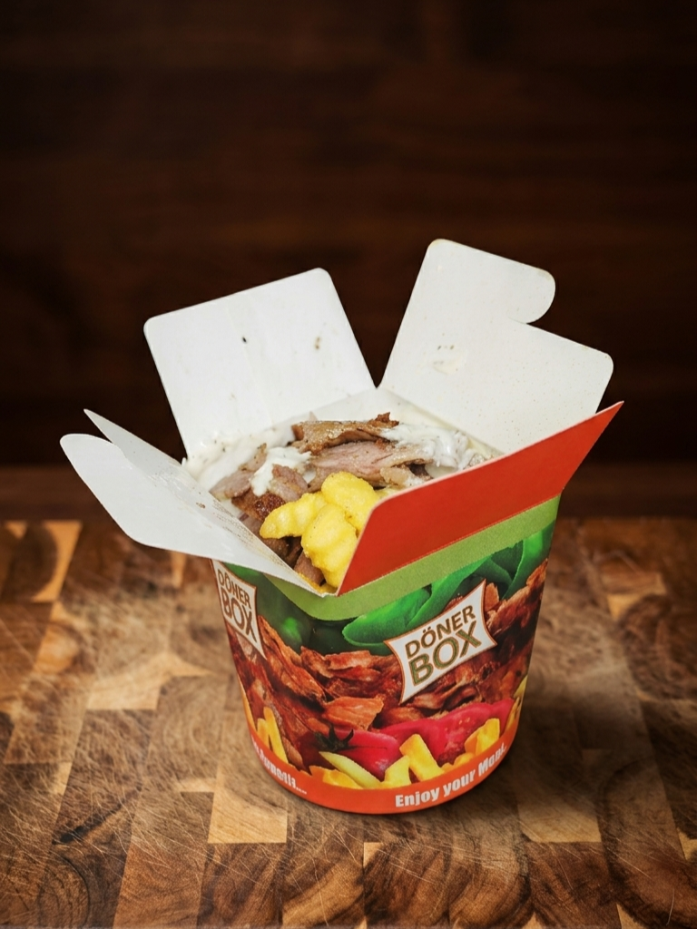 8,00 € Döner-Box mit Dönerfleisch & Pommes (C,F,N,M,L,1,6,9)